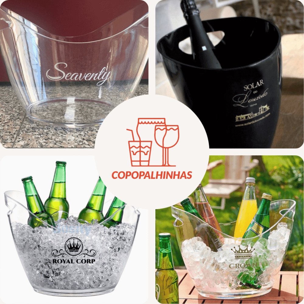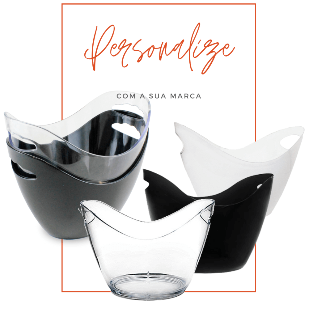 Personalize os nossos baldes de gelo e adicione um toque de elegância e sofisticação no seu estabelecimento. Seja um evento formal ou uma festa descontraída, os baldes de gelo personalizados são uma maneira fácil de elevar o estilo do seu evento.