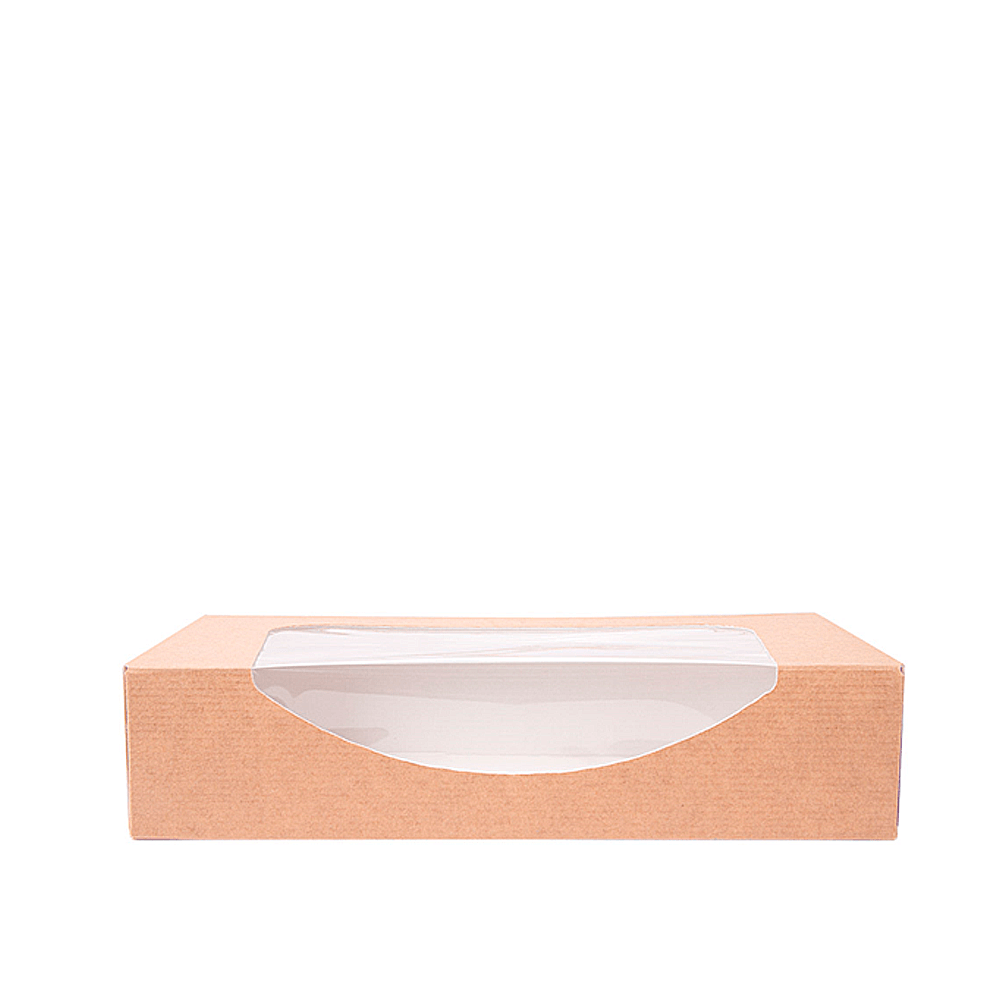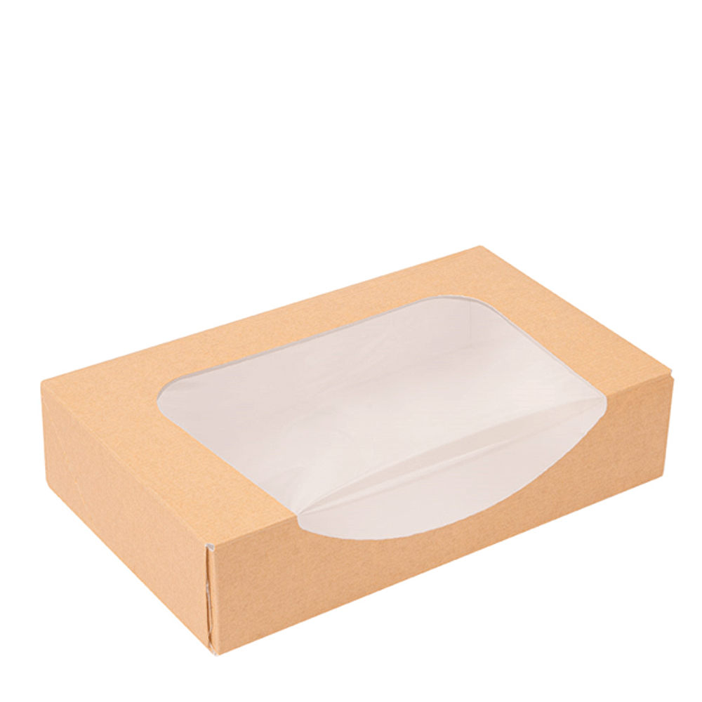 Ideal para restauração. Esta caixa combina funcionalidade com um design ecológico, sendo 100% reciclável e amiga do ambiente. A janela fácil de retirar para uma reciclagem ideal. Mais embalagens em cartão descartáveis aqui