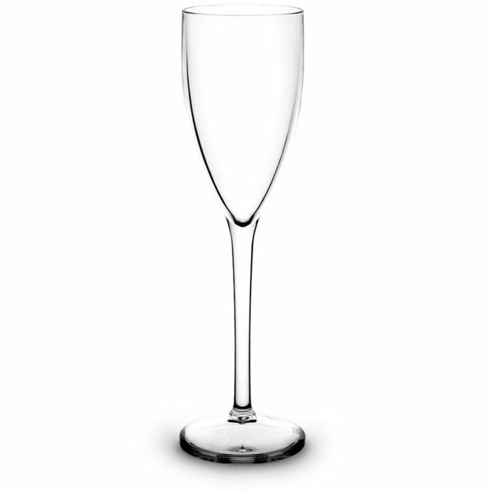 A forma esguia deste copo flute em PC transparente de 15cl (150ml) confere um toque sofisticado a qualquer ocasião. Como resultado, o visual das bebidas torna-se mais atrativo, cativando a atenção dos convidados. Por outro lado, a capacidade moderada ajuda a manter um consumo equilibrado, o que se revela perfeito para eventos onde se deseja um ambiente descontraído, mas elegante.