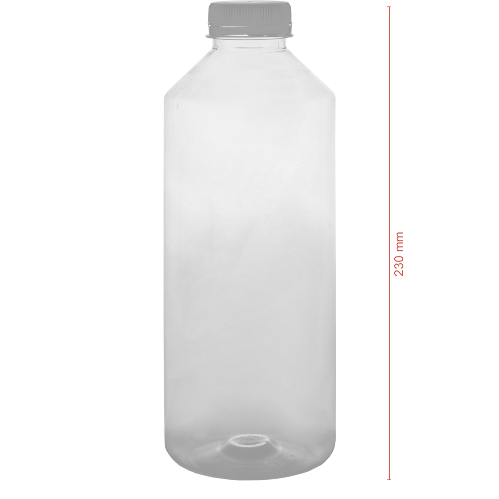 Capacidade: 1L (1000ml). Material: PET. Cor da garrafa: transparente. Tampa: branca, rosca, vedação segura. Tipo: descartável e reciclável. Aplicações: água, sumos, chás frios, bebidas desportivas e cocktails sem gás; restauração, take-away, eventos e uso diário.
