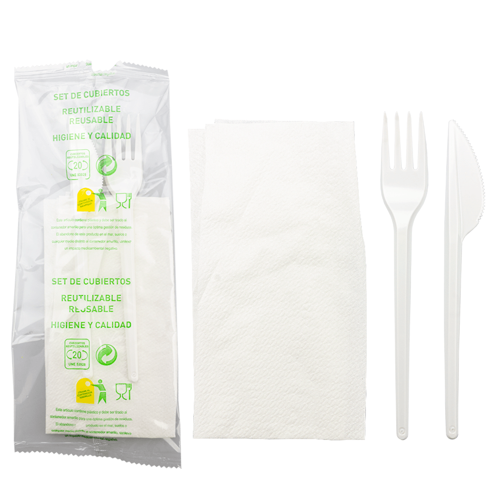 Com o kit garfo e faca padronizas consumos e facilitas o inventário. Além disso, como o conjunto é reutilizável, podes lavar e voltar a usar sempre que o teu contexto operacional o permita, baixando custos recorrentes face a alternativas totalmente descartáveis.