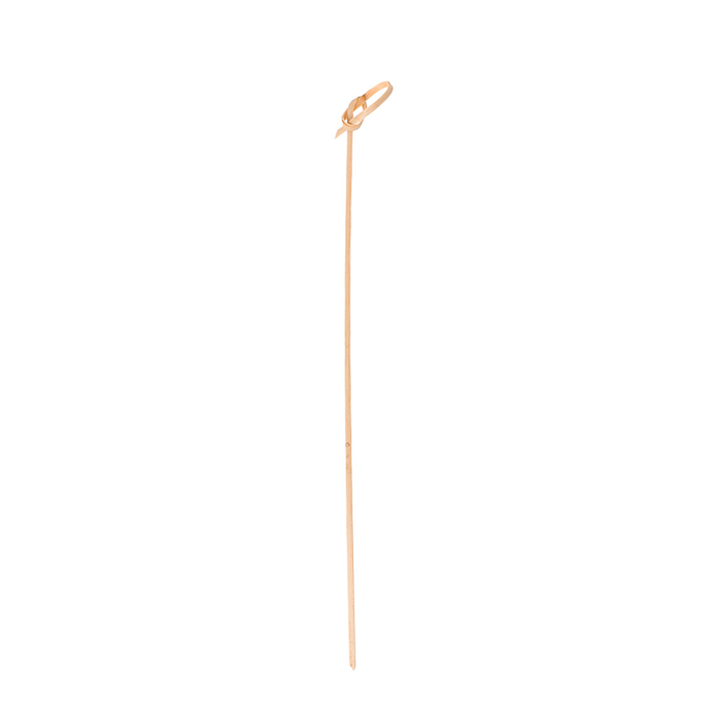Os espetos de bambu reutilizáveis da Copopalhinhas destacam-se pelo seu laço decorativo na extremidade, que confere um aspeto artesanal e elegante. Esta característica torna-os perfeitos não apenas para servir alimentos, mas também como elemento decorativo em mesas de buffet ou apresentações gastronómicas criativas.