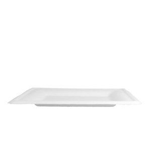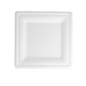 Dimensão: 20 cm (quadrado). Cor: branco. Material: bagaço de cana-de-açúcar. Tipo: descartável, biodegradável e compostável EN 13432. Propriedades: resistente a óleos e humidade; apto para contacto alimentar; intervalo de utilização aproximado −18 ºC a +100 ºC; apto para micro-ondas (curta duração); não apto para forno.