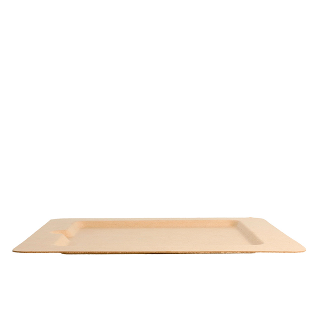 O formato quadrado destaca as preparações e enquadra porções com precisão. Por isso, o prato em bagaço resulta em pratos principais, saladas, tábuas frias ou sobremesas. Além do aspeto natural, a superfície firme ajuda a manter a comida estável durante o serviço e o transporte.