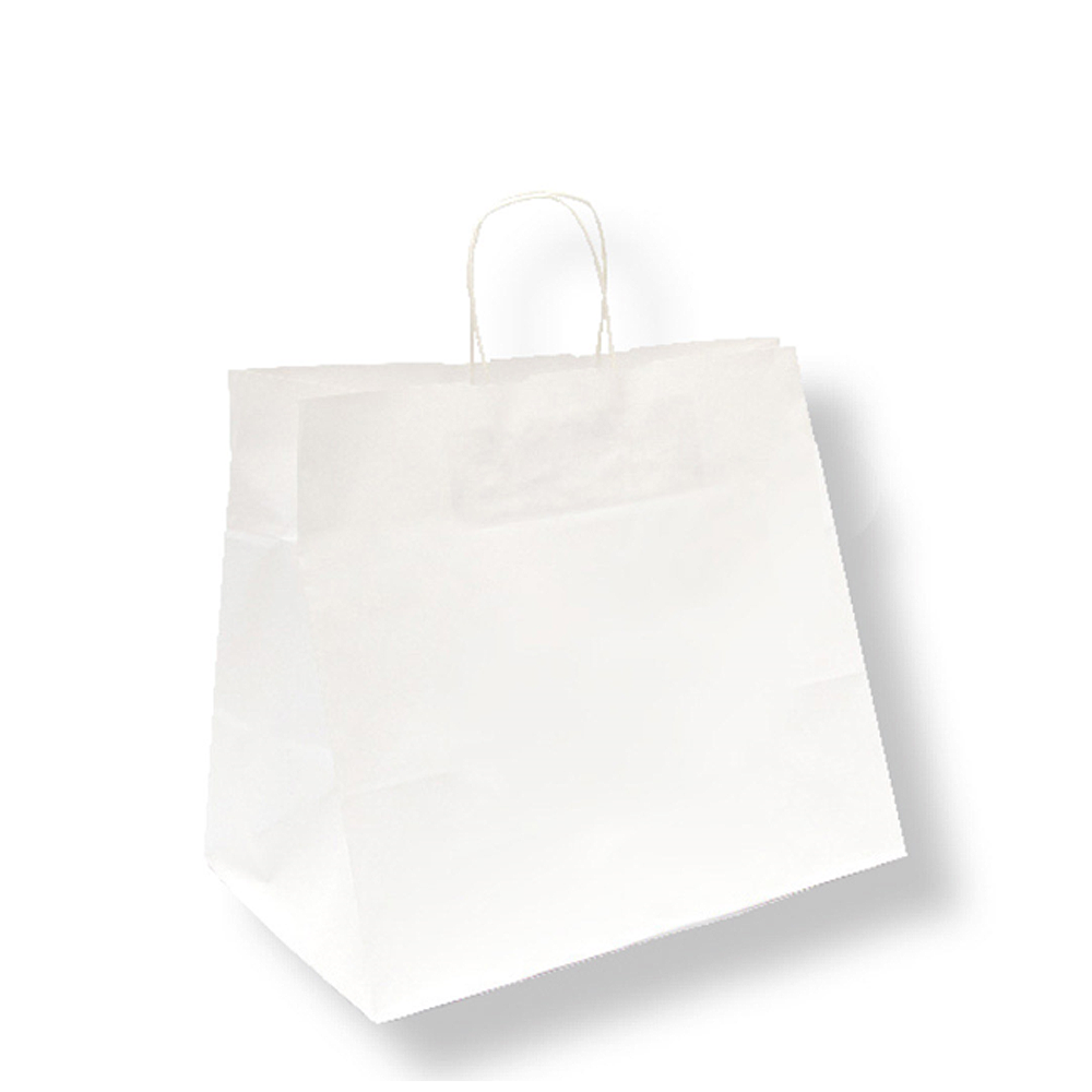 O saco papel branco com asa 28,5x32x21 cm foi concebido para quem precisa de uma embalagem fiável, limpa e profissional. Porque o papel branco de qualidade oferece boa resistência ao rasgo e à tração, o saco mantém a forma e protege o conteúdo durante o transporte. Além disso, a cor neutra realça o produto e transmite uma imagem cuidada no ponto de venda.