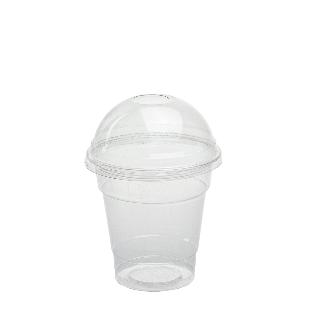 Com 300 ml, o copo com tampa alta com furo adapta-se a sumos, batidos, milkshakes, refrigerantes e outras bebidas refrescantes. Portanto, ele atende perfeitamente a cafés, geladarias, pastelarias e serviços takeaway, oferecendo uma solução prática e versátil.