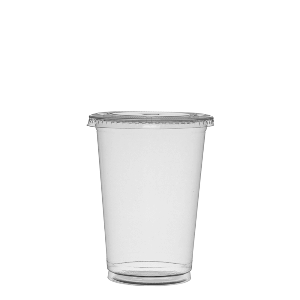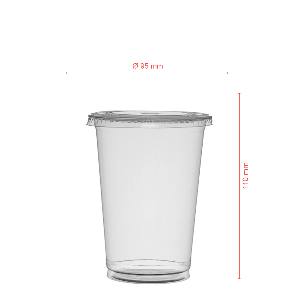 Taça (Copo) em rPET com Tampa Rasa sem Furo 55cl (Aferida a 40cl): Sabor e Conveniência em Grande Estilo