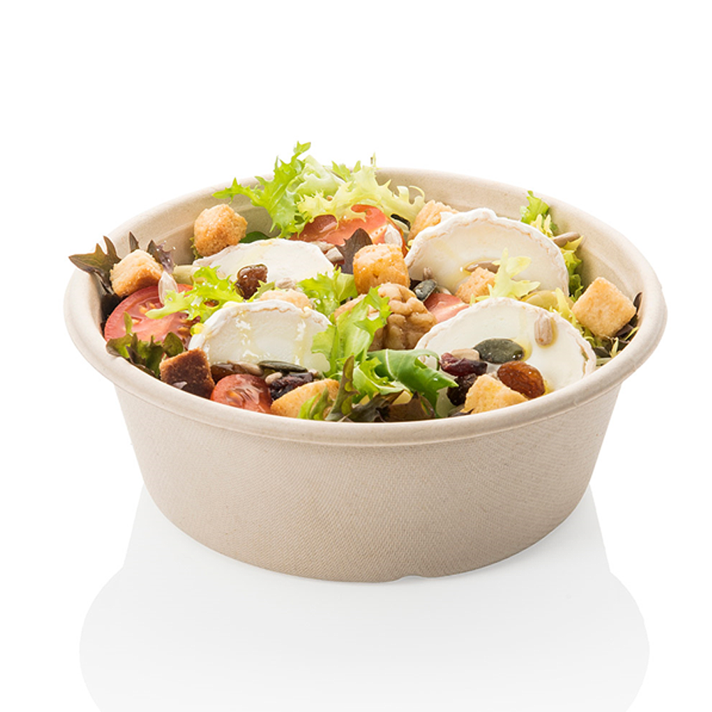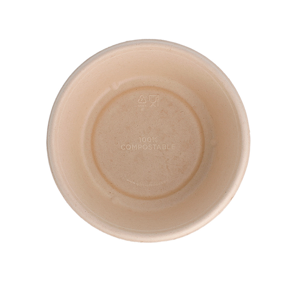 O corpo em bagaço é biodegradável e compostável em condições industriais (seguir regras locais). A tampa PET é reciclável na maioria dos fluxos; assim, o conjunto comunica responsabilidade sem comprometer a visibilidade do produto. A taça bagaço tampa PET é adequada a contacto alimentar e integra-se facilmente em rotinas HACCP.